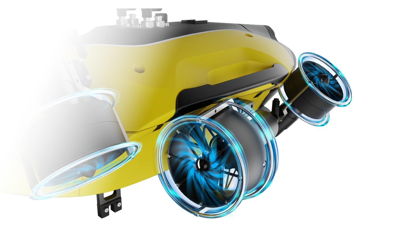 リデザインした産業用スラスターにより、最大4.5ノットの前進速度を実現。パワフルかつ効率的な水中オペレーションを可能にし、強流下でも安定した操作性を提供します。