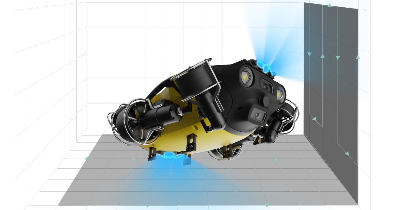 FIFISH X1 features a tri-directional collision avoidance sonar system that scans the surrounding environment in real time to prevent collisions. With customizable avoidance distance settings, it ensures enhanced operational safety when navigating complex subsea platforms and structures.