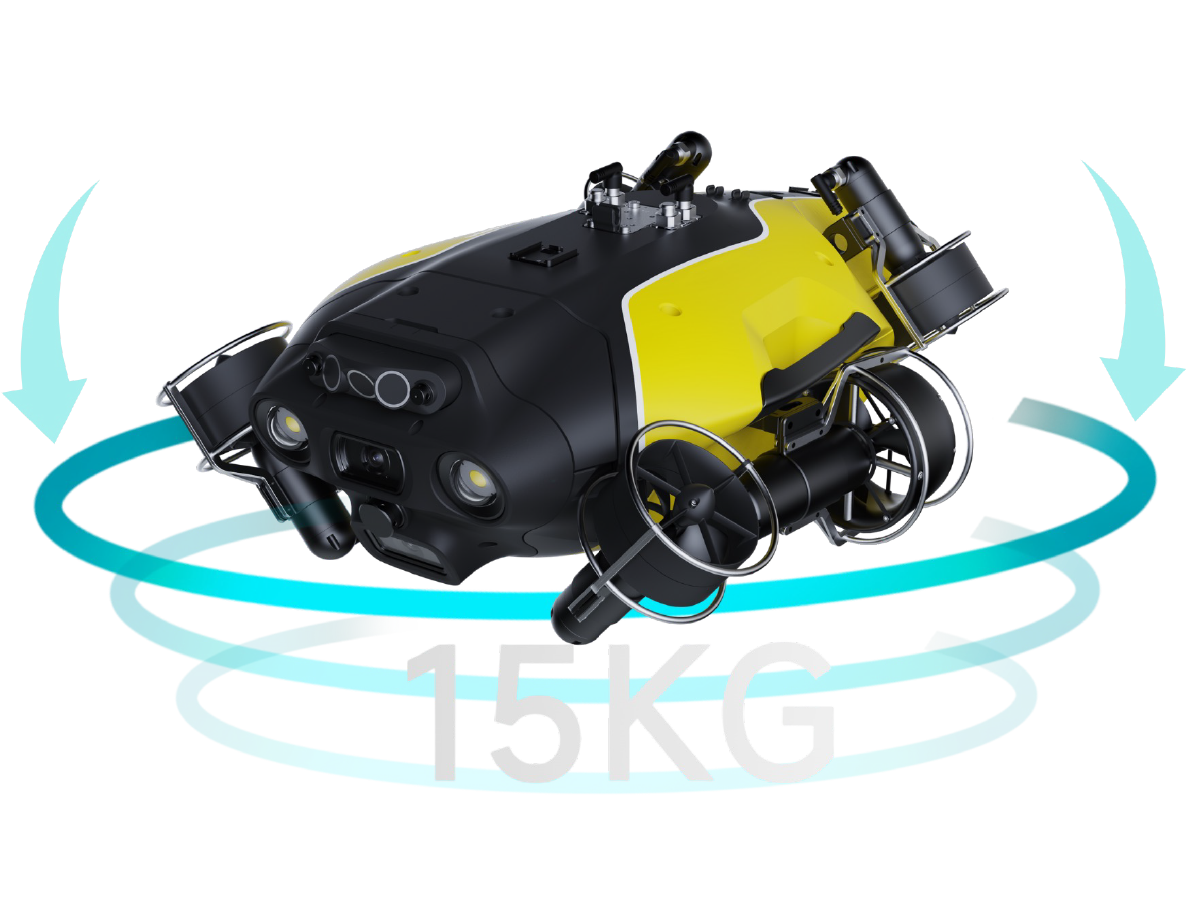 FIFISH X1’s powerful propulsion system supports an impressive 15kg payload, maintaining stability even in challenging sea conditions. It seamlessly handles various underwater NDT tools, ensuring simpler, more reliable inspections with precise data delivery.