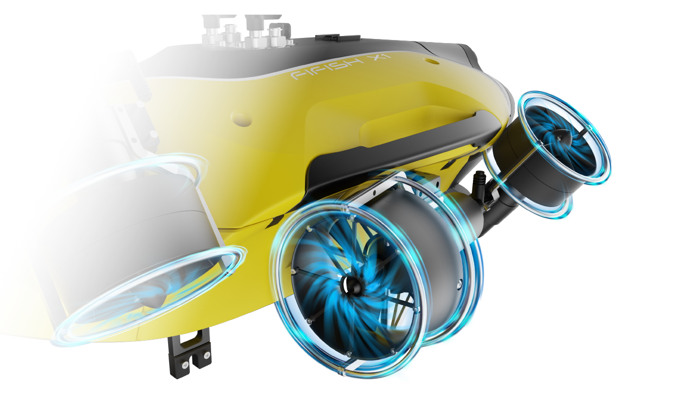 FIFISH X1 features a direct power supply system, providing continuous 24/7 operation. By using a cable for power, it removes battery capacity limitations, offering stable and efficient support for extended deep-sea operations. This makes it ideal for long-duration, high-intensity tasks and continuous monitoring, while reducing costs related to operational interruptions and battery replacements.