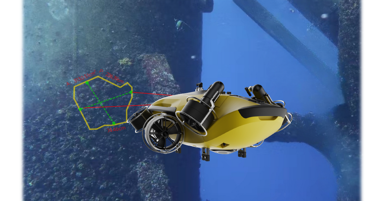 The QY-MT smart measurement tool is QYSEA‘s groundbreaking AI-powered underwater non-destructive measurement system, enabling precise, non-destructive measurement of corrosion areas, pipeline cracks, and damage to offshore structures, with accuracy down to the millimeter level. With a single click, operators achieve simultaneous adaptive measurements of length, width, angle, and area of a target.